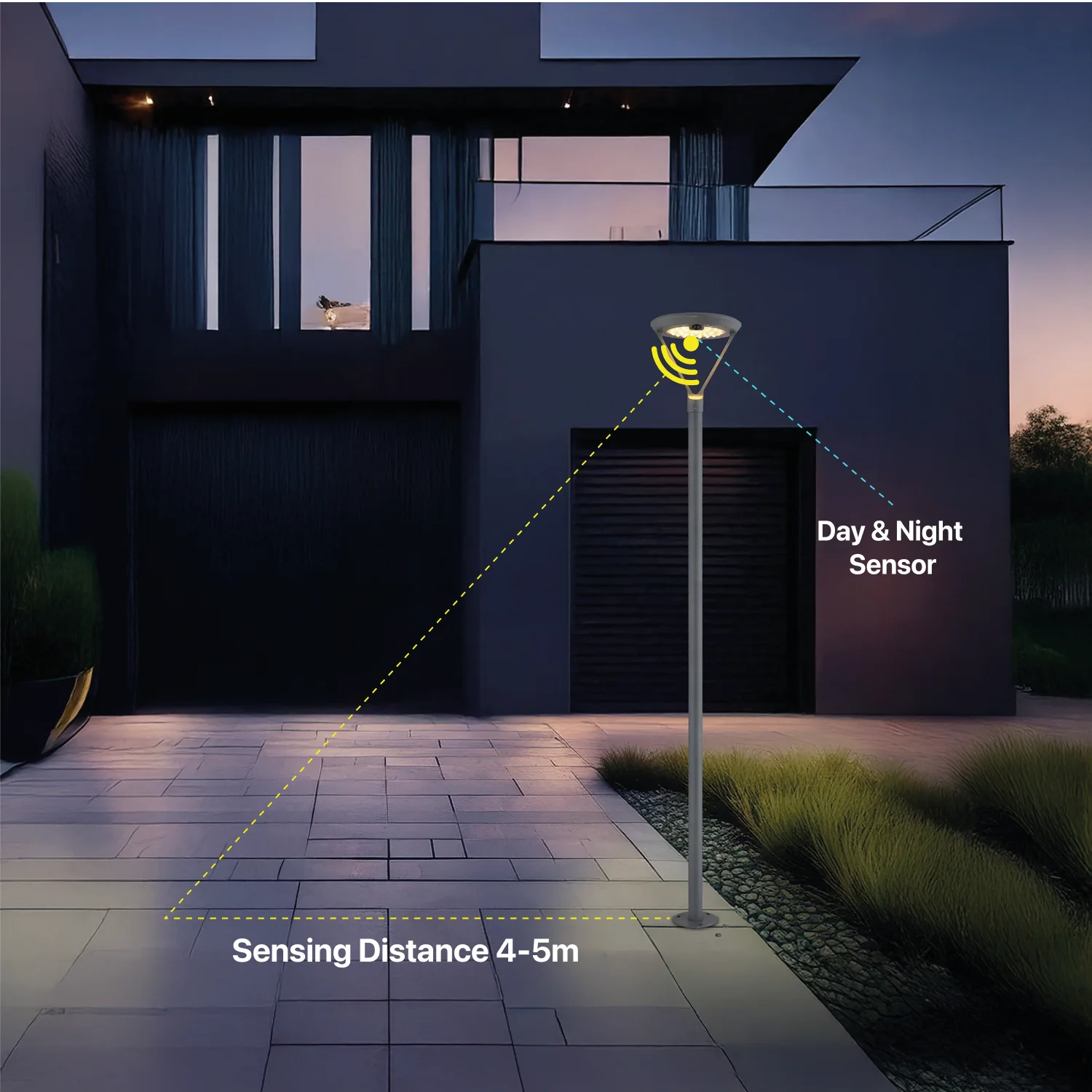 ✔ مستشعر ذكي للحركة والضوء: يتحكم في تشغيل الإضاءة تلقائيًا لتوفير الطاقة وزيادة الأمان.