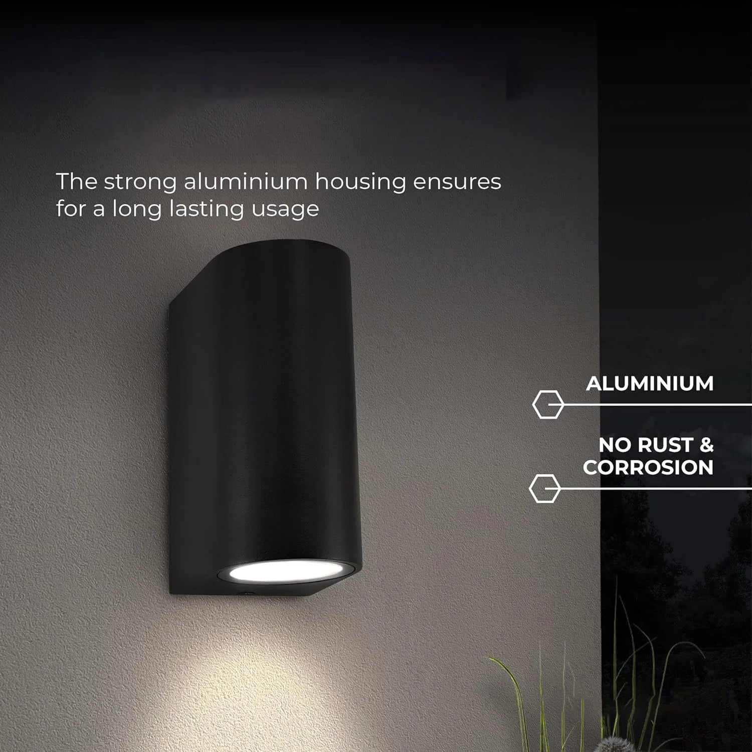 مثالي لـ إضاءة الجدران الخارجية في مداخل الفلل، الشرفات، ممرات الحدائق، واجهات المباني التجارية، والتطبيقات التي تتطلب إضاءة عصرية لأعلى وأسفل.